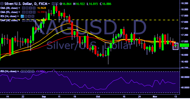 We prefer to take short position in XAG/USD around $16.90, stop loss $17.05 and target of $16.72/$16.60.