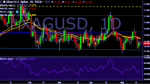 We prefer to take long position on XAG/USD only above $16.42, stop loss $16.28 and target of $16.72.