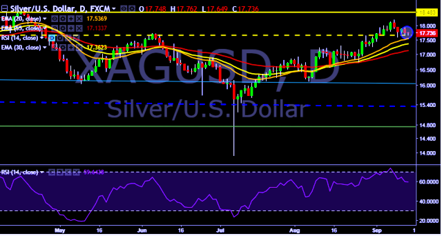 We prefer to go long on XAG/USD around $17.70 with stop loss at $17.62 and target of $17.95/$18.20.