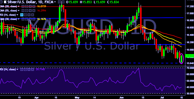 We prefer to take long position on XAG/USD only above $15.89, stop loss $15.65 and target of $16.20.