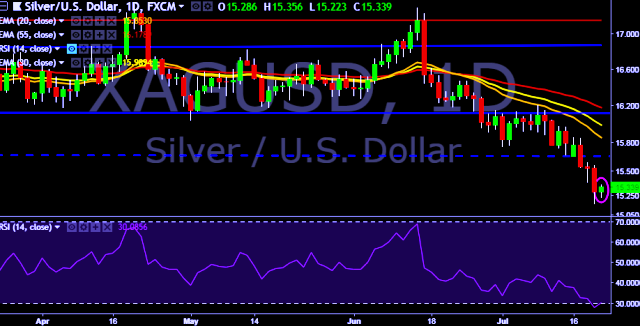 We prefer to take short position on XAG/USD around $15.38, stop loss $15.48 and target of $15.15.