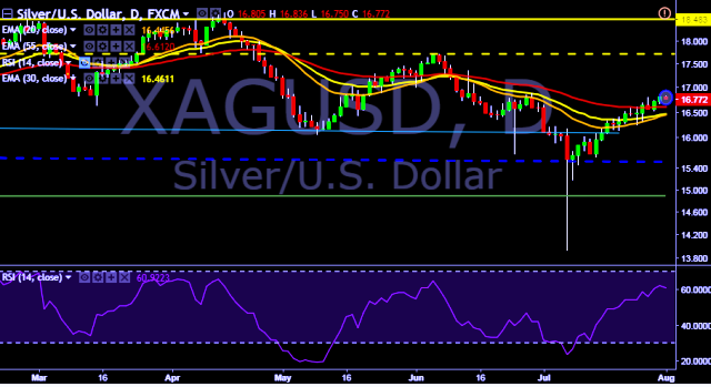 We prefer to go long on XAG/USD around $16.72 with stop loss at $16.65 and target of $16.90/$17.01.