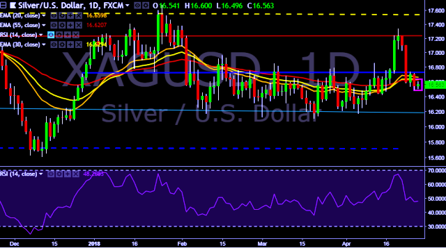 We prefer to take short position in XAG/USD around $16.56, stop loss $16.62 and target of $16.48/$16.37.