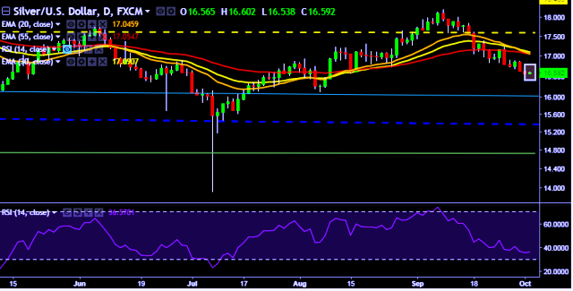 - XAG/USD is currently trading around $16.59 marks.