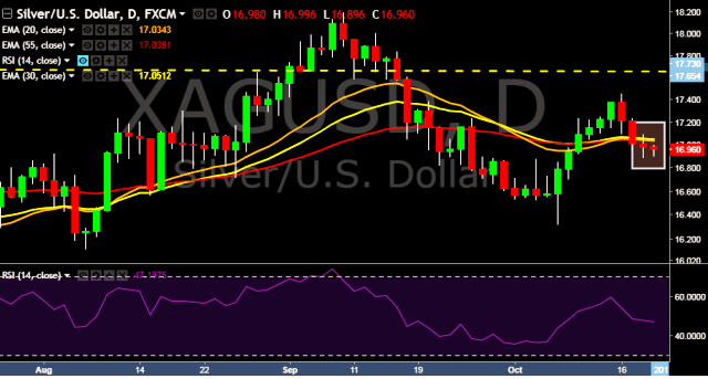 We prefer to take short position in XAG/USD only below $16.88, stop loss $17.08 and target of $16.70/$16.57.