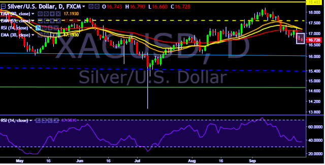 We prefer to take short position in XAG/USD around $16.78, stop loss $16.92 and target of $16.40.