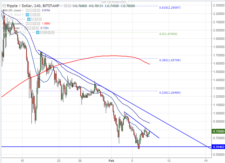 - Ripple is consolidating after hitting low of 0.56270 level. The pair jumped till 0.8250 yesterday and is currently trading around 0.75570.