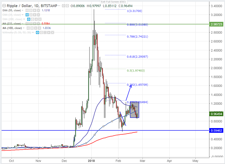 - Ripple shown a minor recovery after hitting low of 0.8600 level.. The pair has closed well below 100- day MA yesterday and declined till 0.9210 level. It is currently trading around 0.9550.