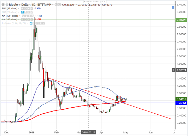 - Ripple is consolidating in narrow range between 0.96490 and 0.7600 for past 8 trading session. The pair hits low of 0.7800 slightly near 200- day MA and shown a minor jump. The pair hits high of 0.96490 from low of 0.4500 almost 115%. It is currently trading around 0.84170. Overall trend is bullishness as long as support 0.4500 holds. Any further weakness only below that level. It is currently trading around 0.8417.