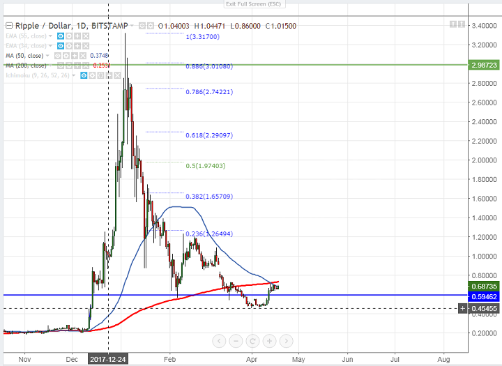 - Ripple has shown a more than 10% recovery after hitting low of 0.63314. The pair was shown a minor bullishness after three days of consolidation. It is currently trading around 0.68935. The pair formed almost a double bottom around 0.4500 and major weakness below that level.