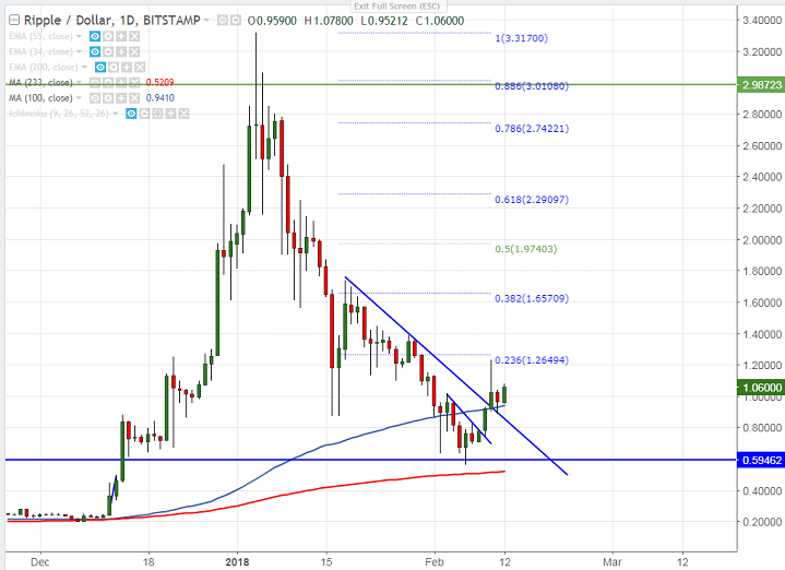 - Ripple has shown a minor bullishness and broken resistance at 1.0200. The pair jumped till 1.2300 and is currently trading around 1.06500.