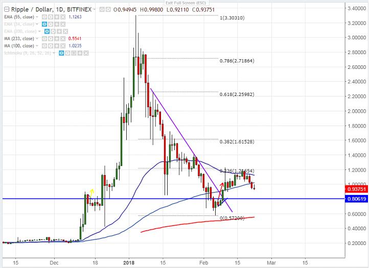 - Ripple continuing its weakness for third consecutive days. The pair has closed well below 100- day MA yesterday and declined till 0.9210 level. It is currently trading around 0.9375.