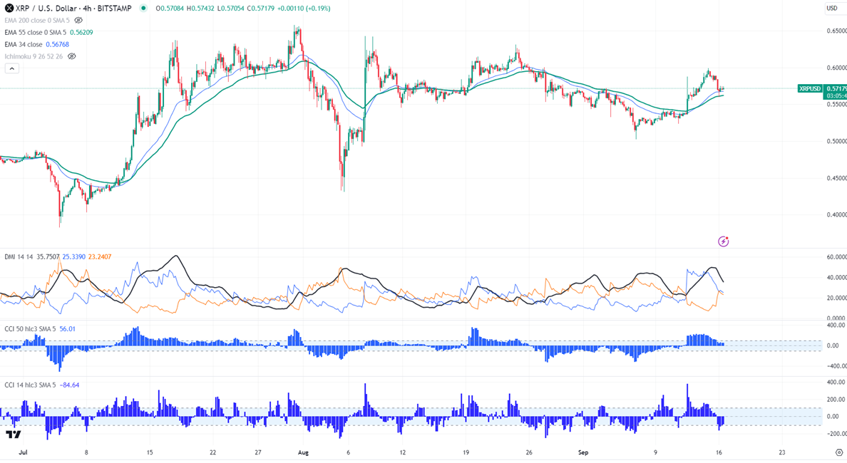 XRPUSD gained above $0.600 after Robinhood re-listing news. It hit a high of $0.5990 and is currently trading around $0.57185.