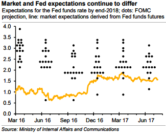 The gap between market expectations and Fed projections will shape the future path of the USD (refer above chart). Depending on how this gap is closed – i.e. on whether the market moves towards the Fed or the Fed towards the market – the dollar would appreciate or not. The Fed believes that it will be able to continue its rate hike course at roughly the same pace next year, provided that inflation accelerates as expected. And that is exactly what the market doubts, seeing that inflation disappointed in recent months.