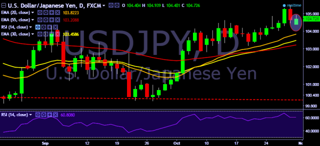 - It made intraday high at 104.93 and low at 104.40 levels.