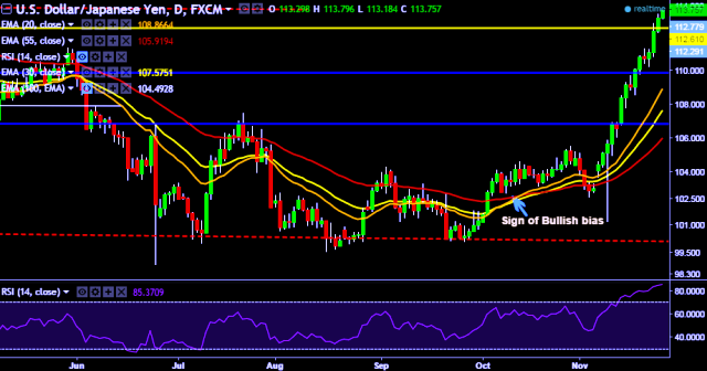 - It made intraday high at 113.79 and low at 113.18 levels.
