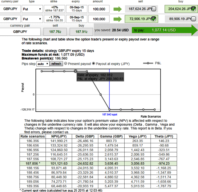 For a net debit bear put spread reduces the cost of hedge by the premium collected (¥72906.94 on the shorts of OTM put) and keeps hedger to participate on upward moves but it comes at the expense of Partial hedge rather than a complete hedge.