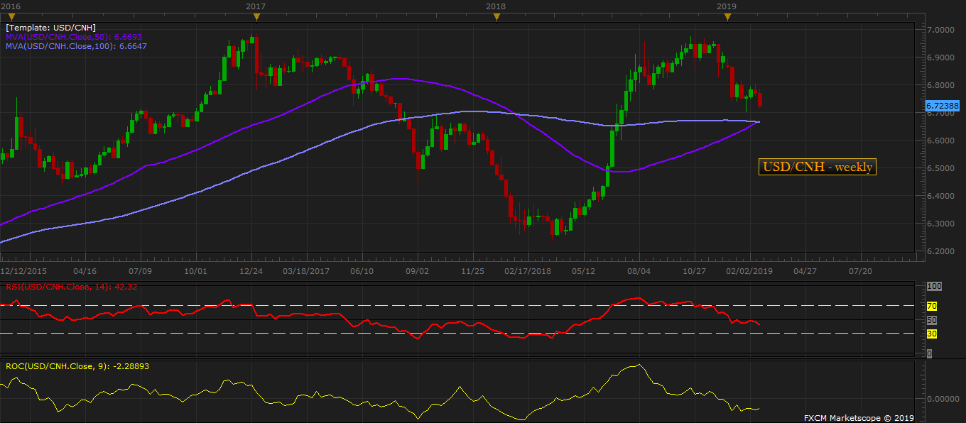 - After consolidating in a tight range (6.73-6.81) against the USD over the past five weeks, USD/CNH is sharply heading lower this week to test the lowest level (6.70 per USD) since September last year.