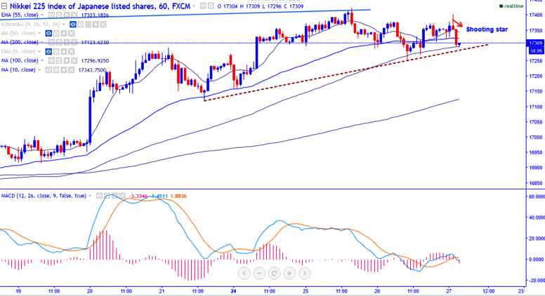 - Nikkei225 declining continuously for the past two days on US elections uncertainties. The index breaks 100 -4H MA and declined sharply till declined sharply till 16947. Global stock markets and dollar slid for the second day as uncertainties surrounding whether Donald Trump or Hillary Clinton will be next president is dragging the global stock markets for past seven days.