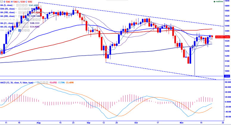 •ASX200 faces major resistance at 100- day MA and it should close above that level for minor jump till 5505.