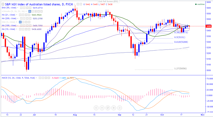 - ASX200 faces strong support at 38.2% retracement of 5152 and 5505 and any further weakness only below that level.