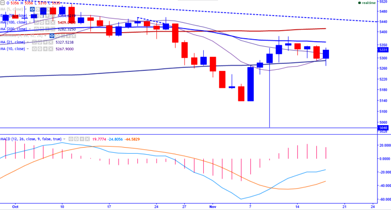 - •The major support is around 5280 (200- day MA) and any break below targets 5200/5150 in the short term.