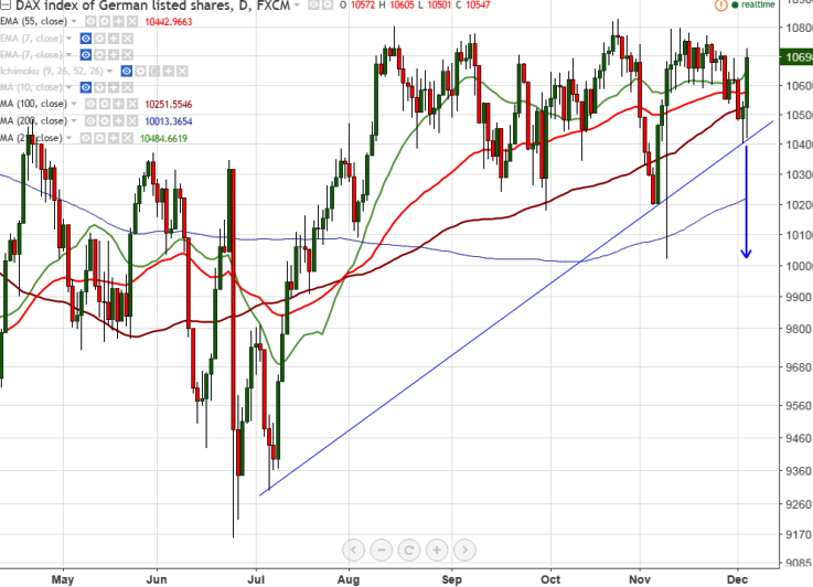 FxWirePro:DAX30 faces strong trend line support at 10400, good to buy on dips