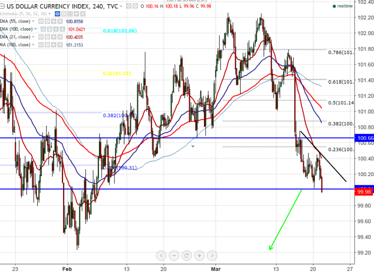 FxWirePro:DXY breaks major support at 100,decline till 99.25 likely