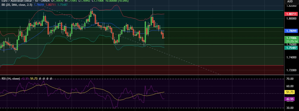• Strong support is seen at 1.7596(38.2 %fib ) and break below could take the pair towards 1.7555(Lower BB).