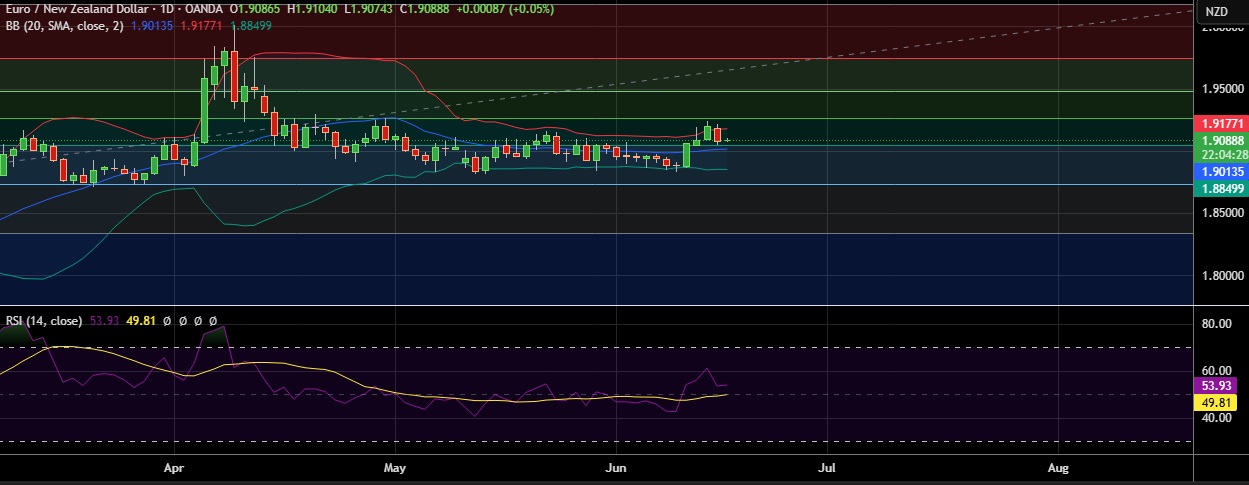 • Immediate resistance is located at 1.9183(Higher BB), any close above will push the pair towards 1.9263 (50% fib).