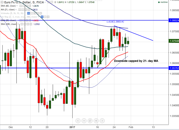 FxWirePro:EUR/USD downside capped by 21- day MA, good to buy on dips