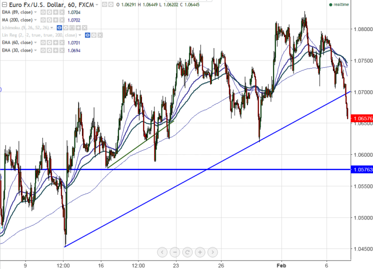 - The trend line support at 1.06963 was acting as minor support and any break below will drag the pair till 1.06200/1.05800 (Jan 19th low).