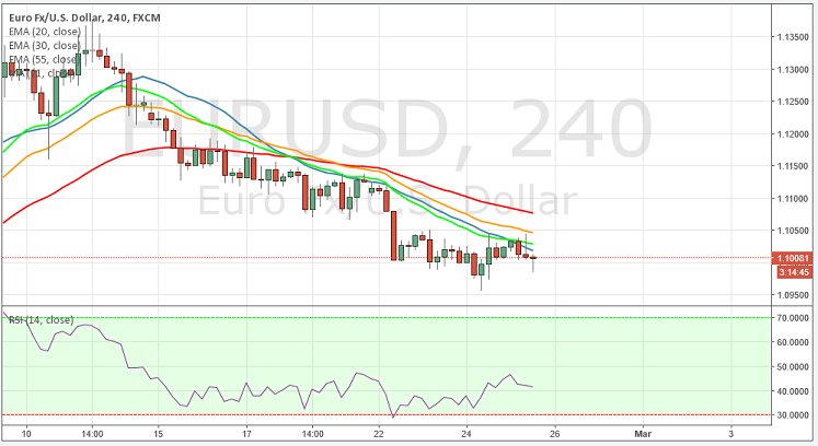 - The EUR/USD pair traded in lower range on Thursday as the pair attracted sellers on fears of possible Brexit from Eurozone.