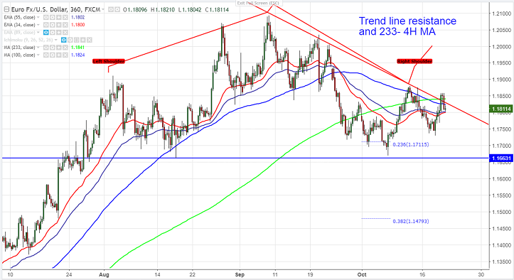 - EUR/USD has declined after hitting high of 1.18578 yesterday after Senate clears tax reform hurdle yesterday. The Senate approves budget for fiscal 2018 which paves way for tax reform without Democratic support. The pair declined till 1.18042 and is trading around 1.180140.