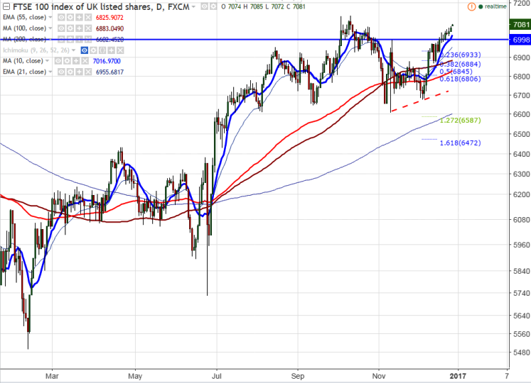 - The index breaks minor resistance at 7050 and slightly jumped till 7084 at the time of writing from that level. FTSE100 closed above 7000 level for the past six trading session. It confirms minor bullishness , a jump till 7300 is possible.