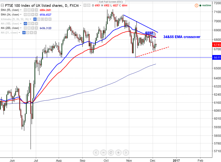 FxWirePro:FTSE100 forms bearish crossover, good to sell on rallies