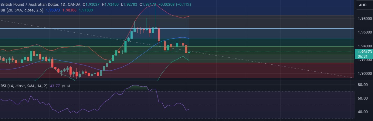 • Strong support is seen at 1.9288(38.2%fib ), and break below could take the pair towards 1.9181 (Lower BB).