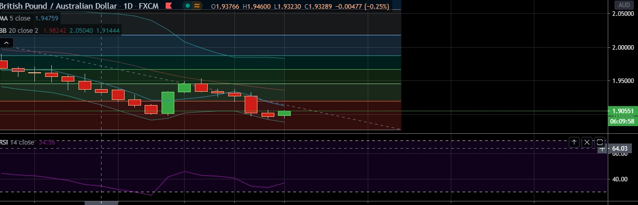 • Strong support is seen at 1.8888 (Lower BB) and break below could take the pair towards 1.8800 (Psychological level).