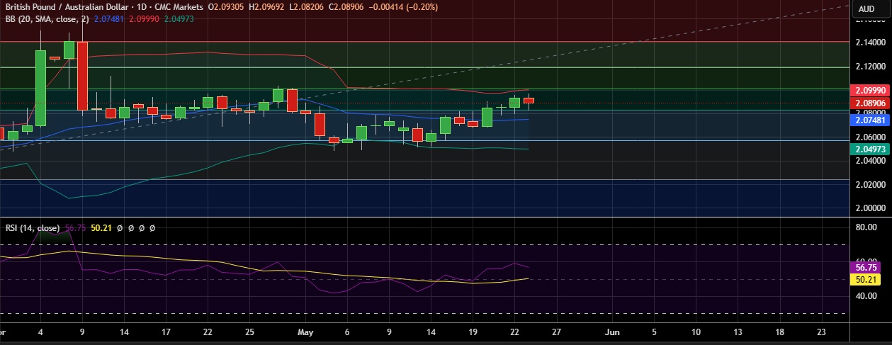 • Immediate resistance is located at 2.1009(50% fib), any close above will push the pair towards 2.1200(38.2% fib).