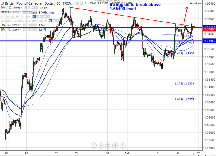 FxWirePro:GBP/CAD struggles to close above 1.6500, good to sell on rallies