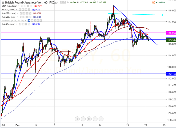 - The pair’s immediate resistance is around 146.35 and any break above will take the pair till 147/147.35/148.50 (Dec 15th high).