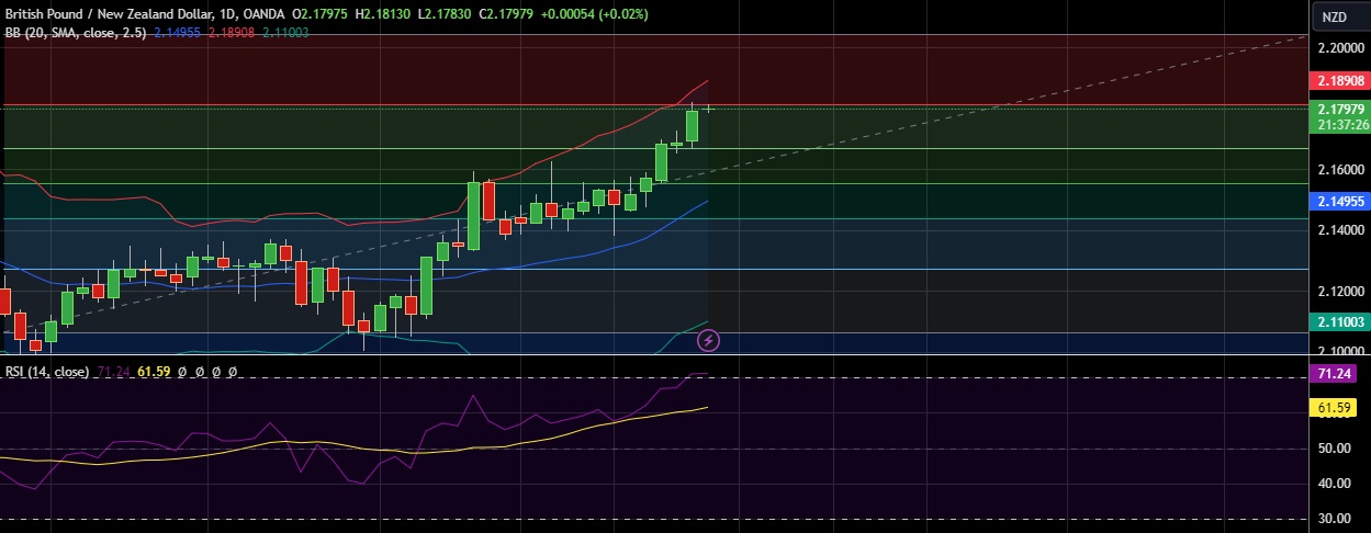 • GBP/NZD steadied around 2.1800 level on Tuesday as sterling firmed day before the Labour government's first budget. .