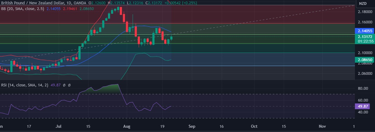 • Immediate support is seen at 2.1188 (50%fib) and break below could take the pair towards 2.1103(Aug 7thlow).