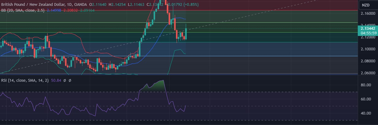 • Support is seen at 2.1282 (50%fib) and break below could take the pair towards 2.1116 (61.8%fib).
