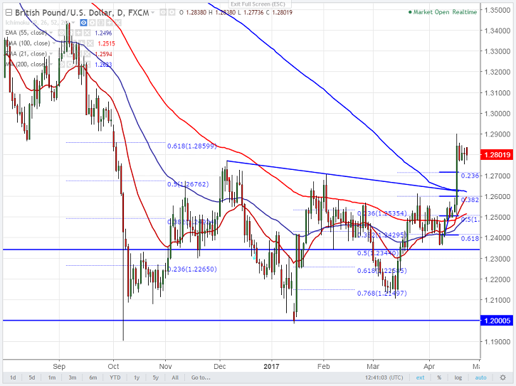 - Any break above the high made on Apr 18th 2017 will take the pair till 1.3000.