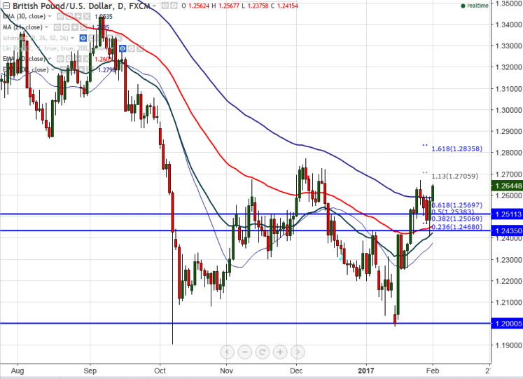 - Cable has taken support near 30 –day EMA and jumped sharply till 1.26313 from that level. The pair should close below 1.2400 for further weakness.