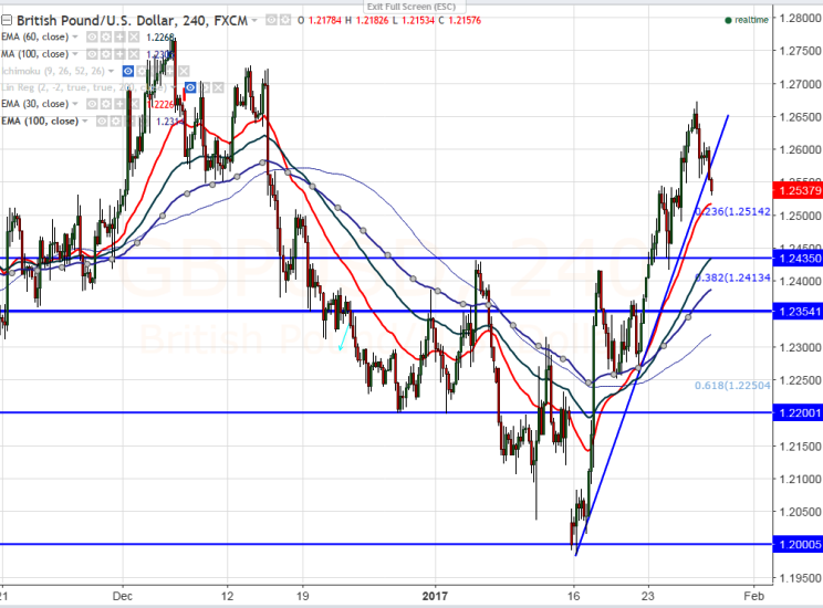 - On the lower side, near term support is at 1.2503 (100- day MA) and any break below will drag the pair to next level till 1.2435 (60- day EMA)/1.24180 (Jan 24th low).