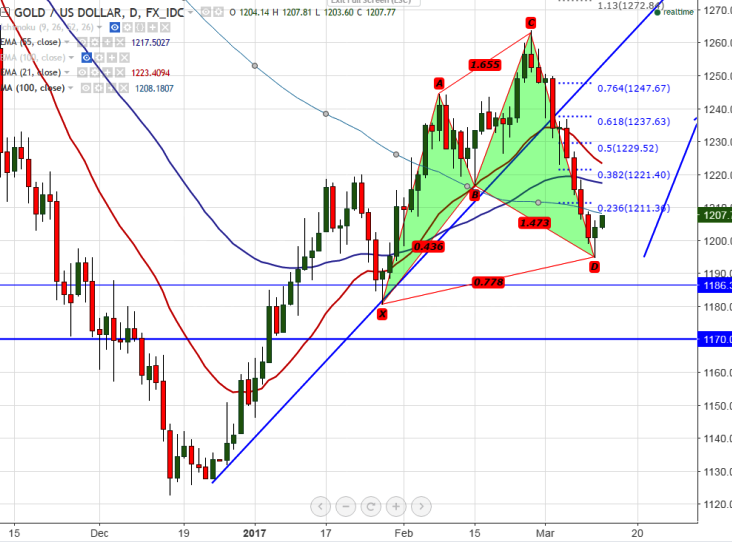 - On the higher side, $1209 (100- day MA) will be acting as next immediate resistance and any break above will target $1218 (55- day EMA)/$1222 (100- day EMA).