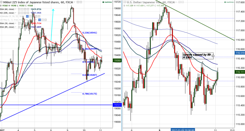 Nikkei225 breaks major psychological support at 19300 and declined slightly till 19241 yesterday .The slight jump in yen has made index to decline till 19241. It is currently trading around 19348 0.1% higher.