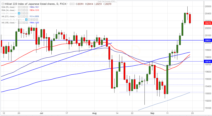 - Nikkei declined slightly after hits two year high on increasing geo political tensions in North Korea. The pair declined till 20260 at the time of writing and is trading around 20256 0.66% lower.
